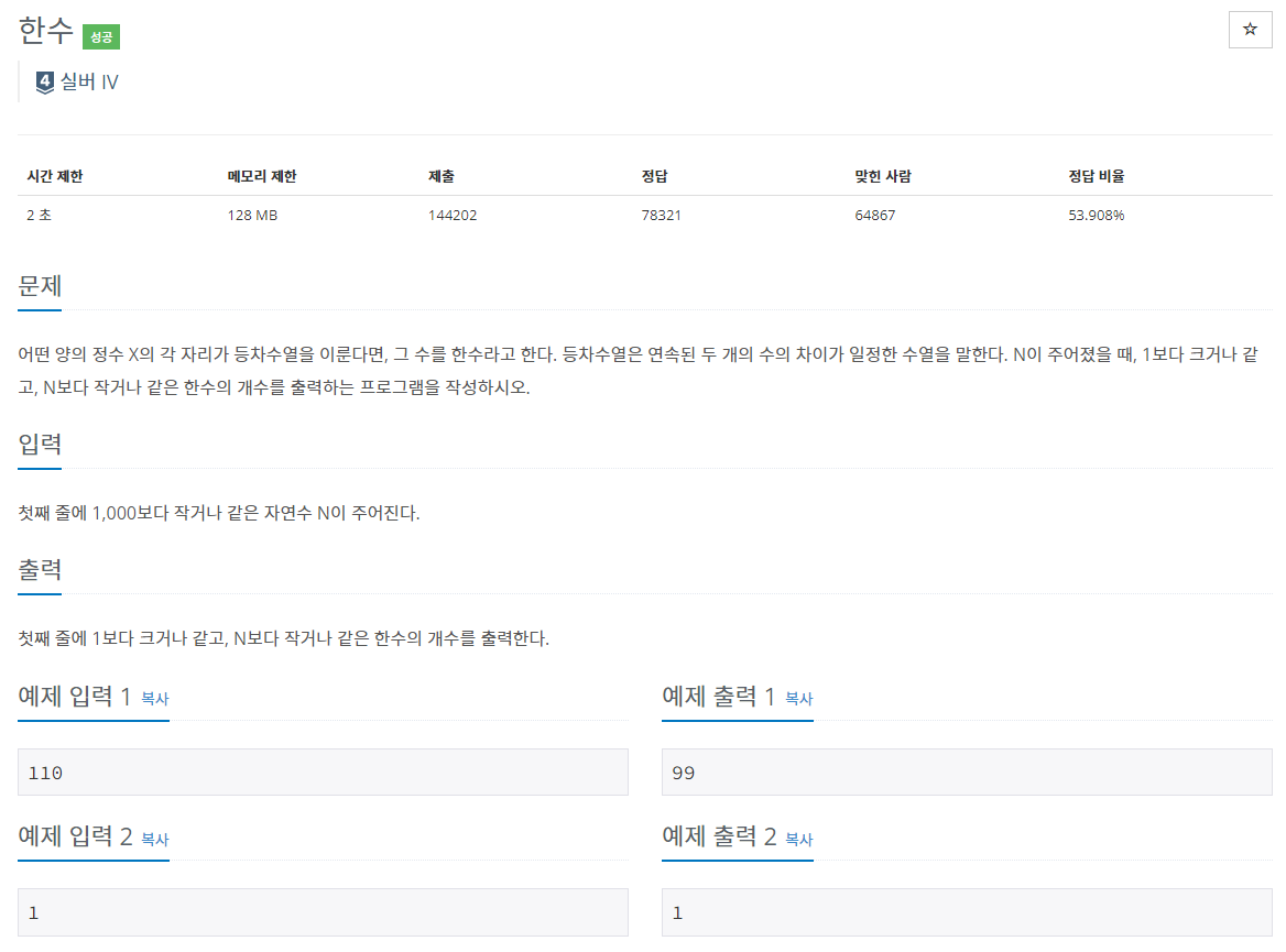 그런데 1 ~ 9는 하나의 숫자 밖에 없기 때문에 자동적으로 한수가 된다.