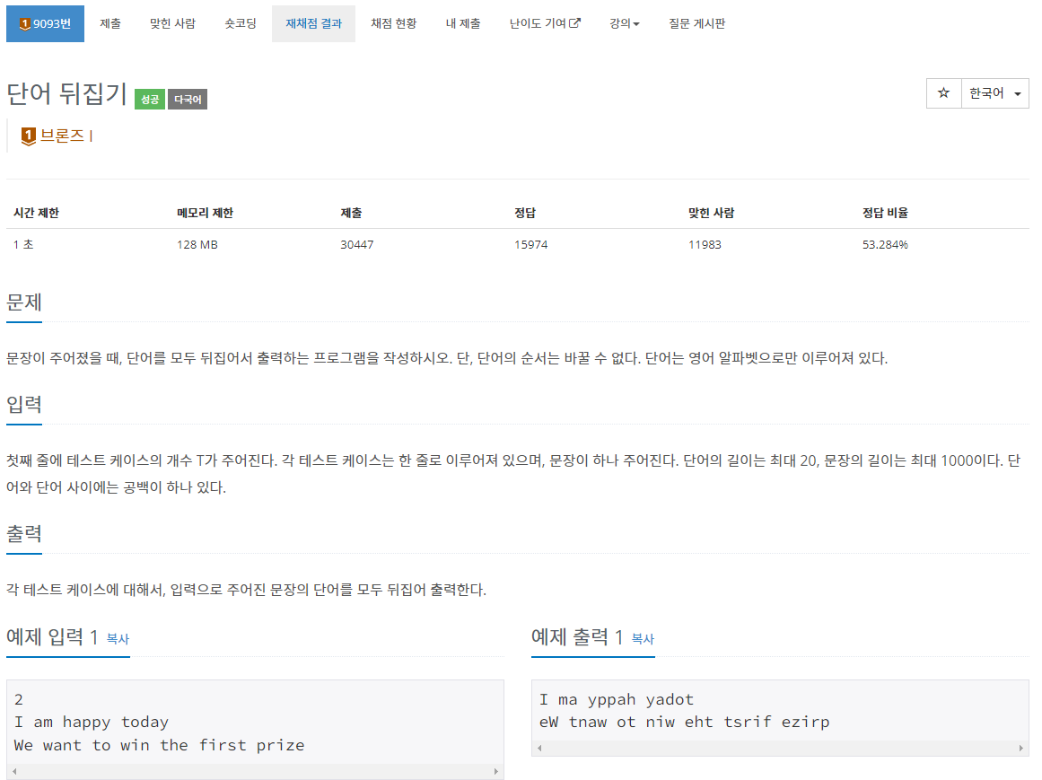 그럼 정상적으로 이제 입력을 받았다고 쳤을 때, 문제에서는 각 단어별로 뒤집으라는 조건이 있다. 그렇다면 하나의 문자열을 받고 공백 혹은 '\n'을 만나기 전까지 스택에 push를 하다가 공백 혹은 '\n'을 만나면 pop하여 출력 해준다면 해결될 것이다.