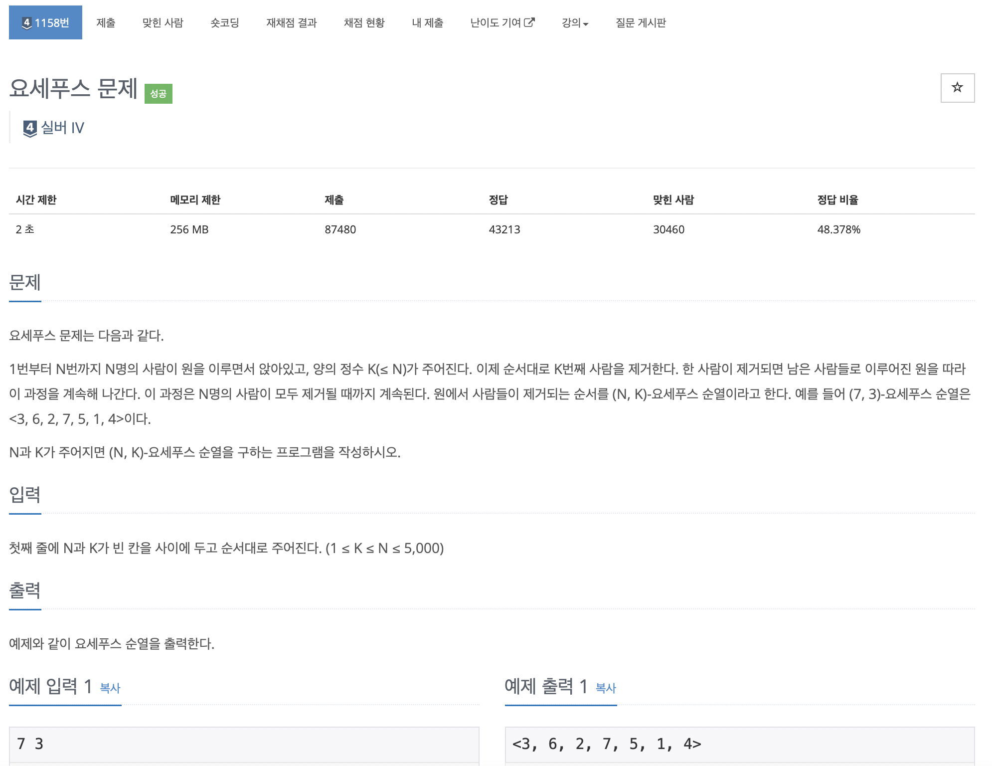 https://www.acmicpc.net/problem/1158