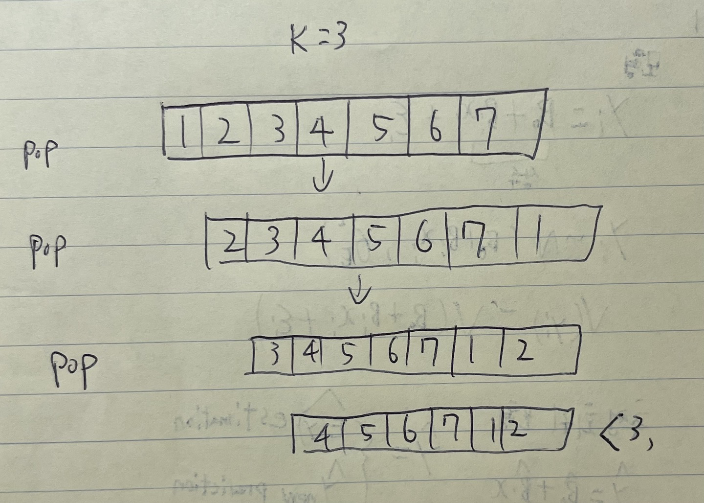 그러면 K만큼 큐에서 pop을 함과 동시에 push를 해주면 문제가 해결이 된다.